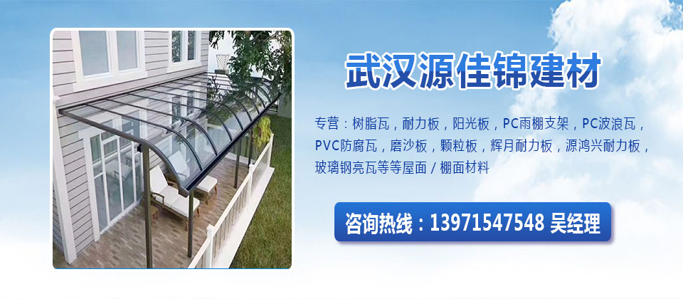武漢市源佳錦建材有限責(zé)任公司是一家從事屋面/棚面/墻面材料的廠(chǎng)家,專(zhuān)營(yíng):樹(shù)脂瓦,耐力板,陽(yáng)光板,PC雨棚支架,PC波浪瓦,PVC防腐瓦,磨沙板,顆粒板,輝月耐力板,源鴻興耐力板,玻璃鋼亮瓦,鋁隔熱瓦,長(zhǎng)城板,鋁隔熱板等等屋面/棚面/墻面材料!規(guī)格可以按您要求定制。公司始終堅(jiān)持把產(chǎn)品質(zhì)量視為企業(yè)生存的基礎(chǔ),把滿(mǎn)足客戶(hù)的要求視為企業(yè)的宗旨,把誠(chéng)信負(fù)責(zé)作為經(jīng)營(yíng)理念。歡迎來(lái)電咨詢(xún)!