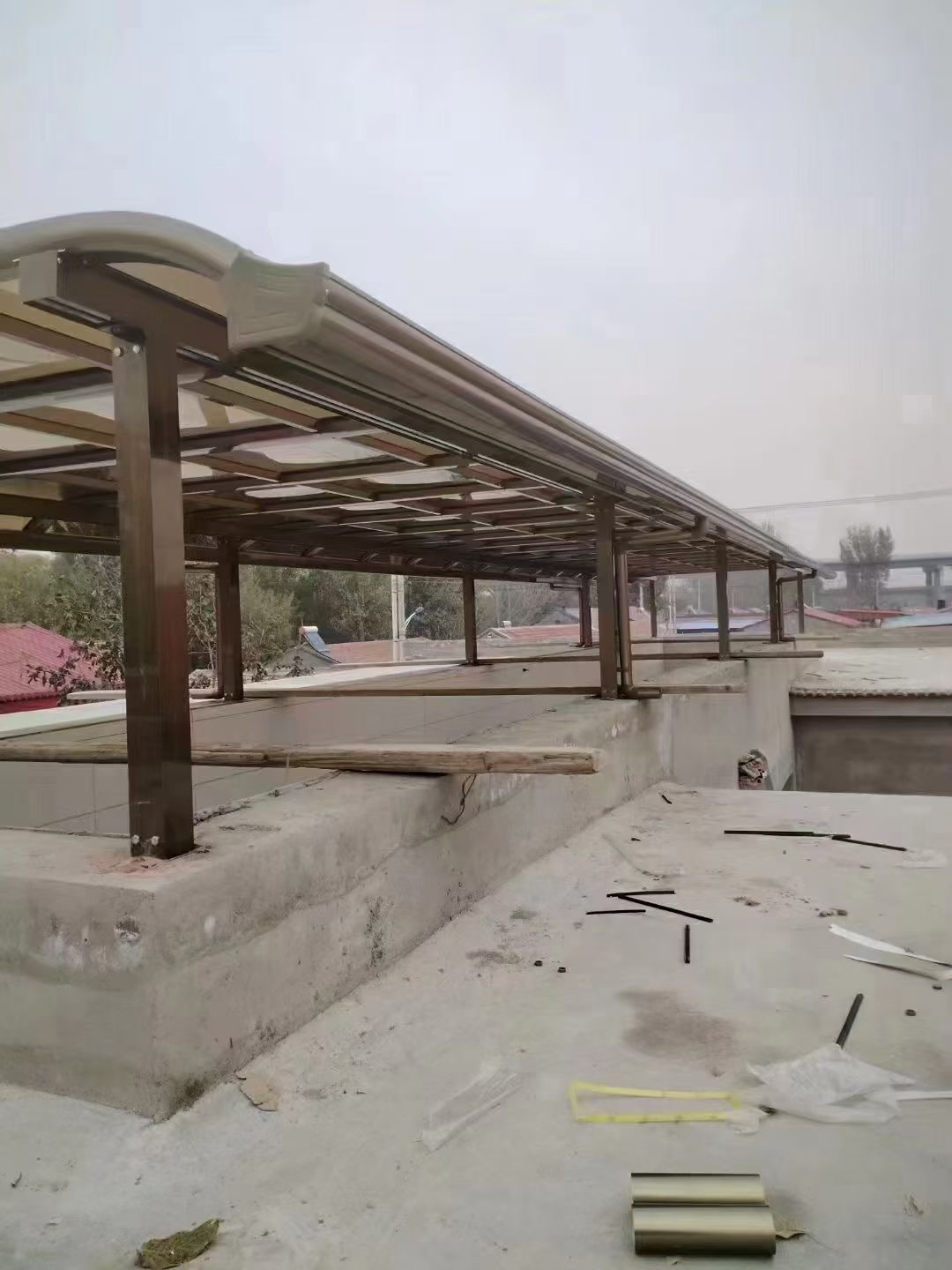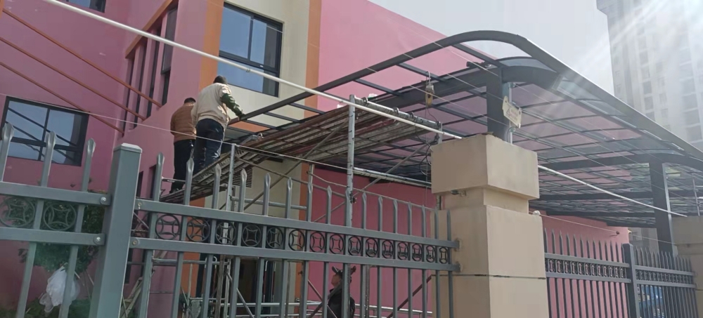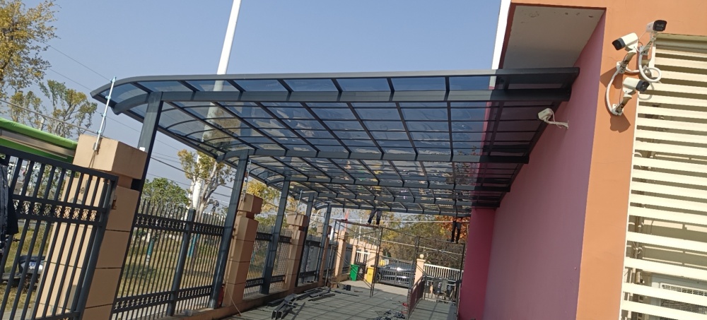 鋁合金雨棚具有耐酸、耐堿、防腐、透光透明等復(fù)合功能,是由德國進口的聚碳酸酯加工而成的板材,具有抗沖擊優(yōu)勢,享有“不破玻璃”、“響鋼”的美稱,是制作防暴盾牌的材料之一,因此用耐力板做的雨棚也非常抗沖擊,就算用錘頭砸也不容易砸壞。耐力板表面有特殊工藝噴涂過的UV涂層保護著板材本身,風(fēng)吹日曬也不會老化變色,因此使用20年都不是問題。市場上會有以次充好的耐力板雨棚,要安裝能使用20年的耐力板雨棚一定要找有品質(zhì)保證的大牌商家。
